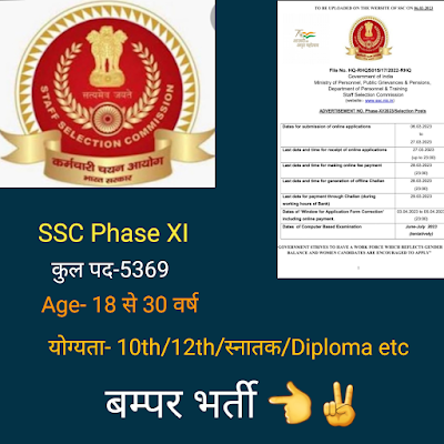 SSC ने Phase XI के करीब 5369 पदों के लिए नोटिस जारी कर दिया है